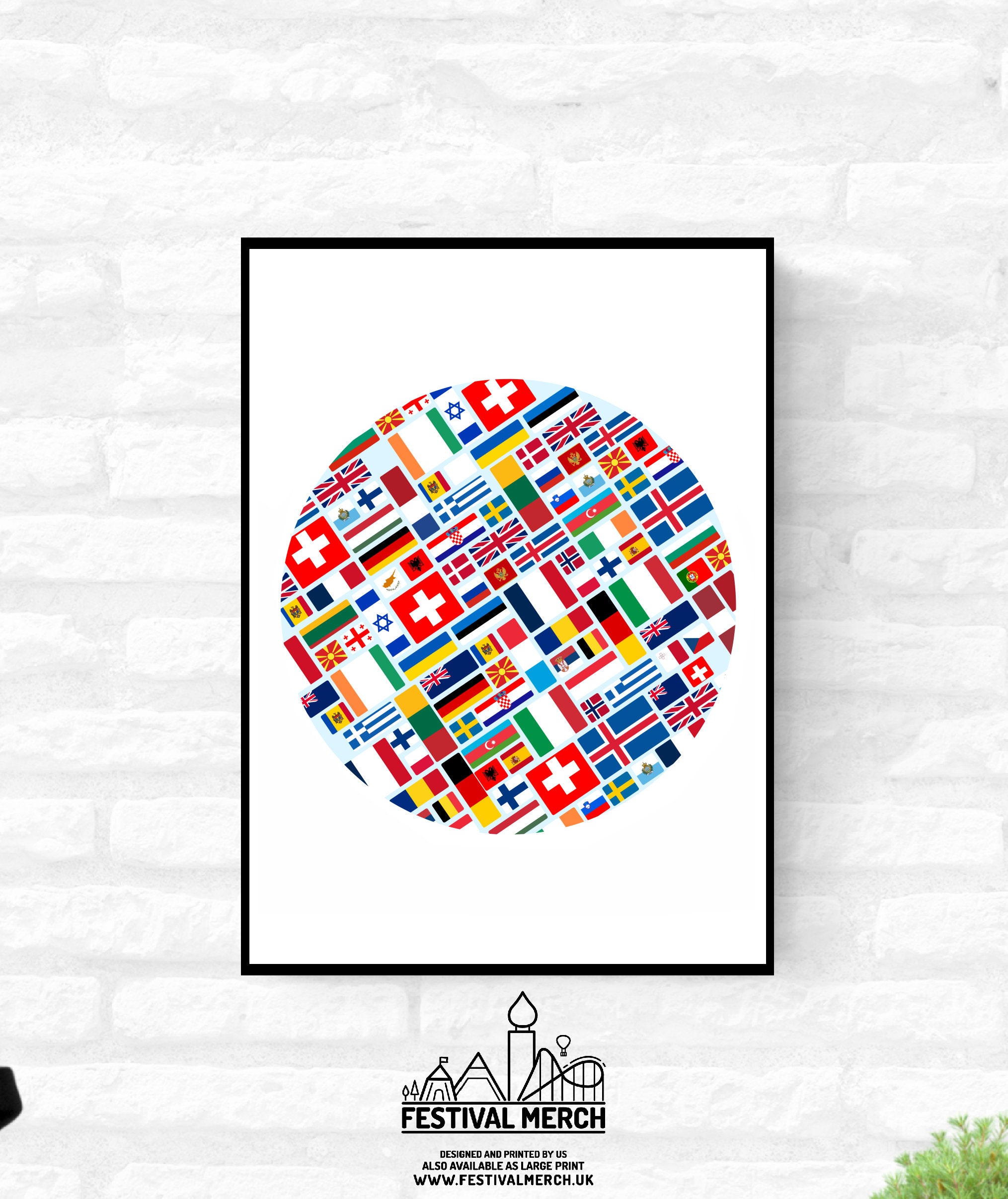Personalisable - Eurovision Inspired Premium Quality Print - Song Contest European Flags - Festival Merch