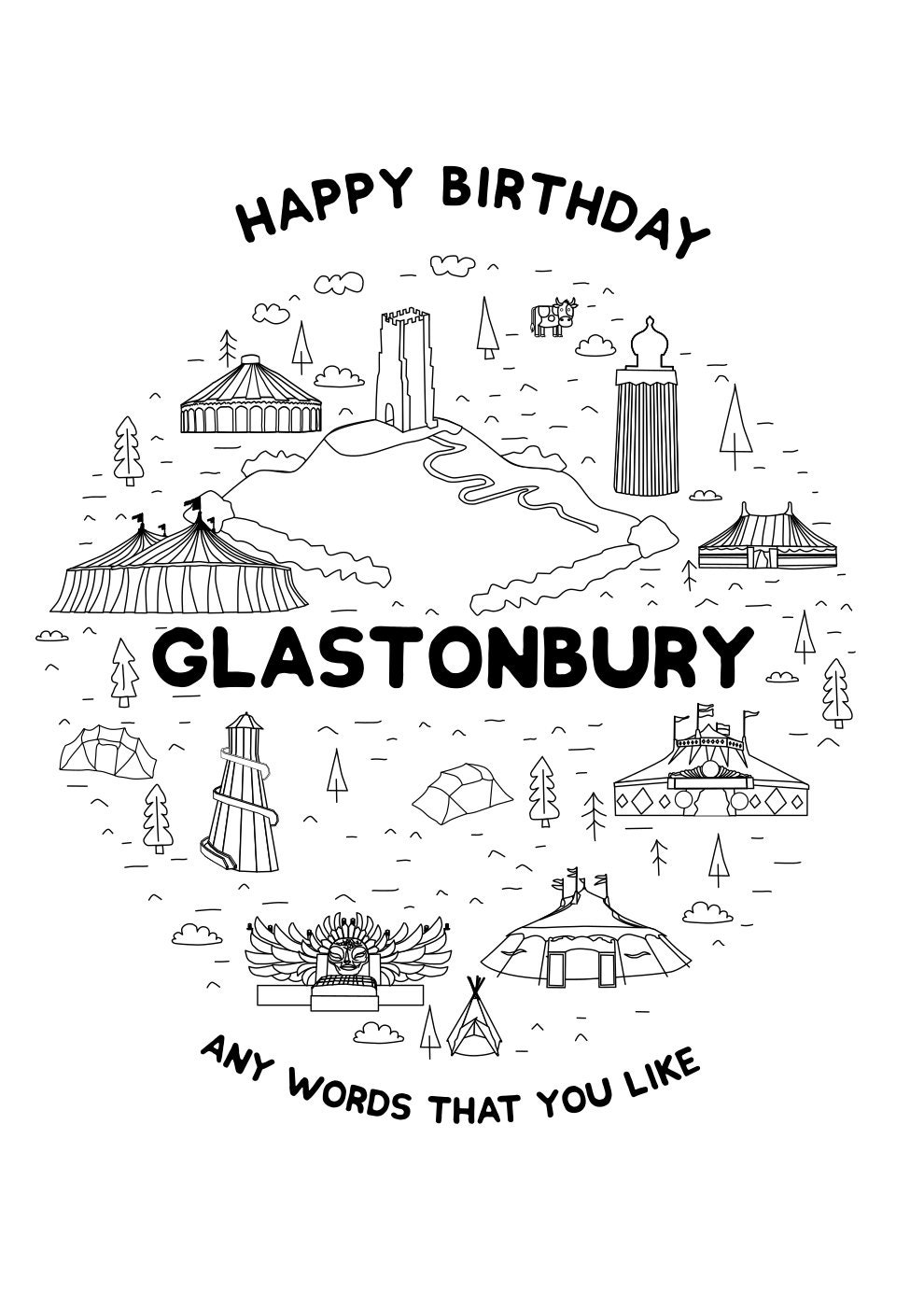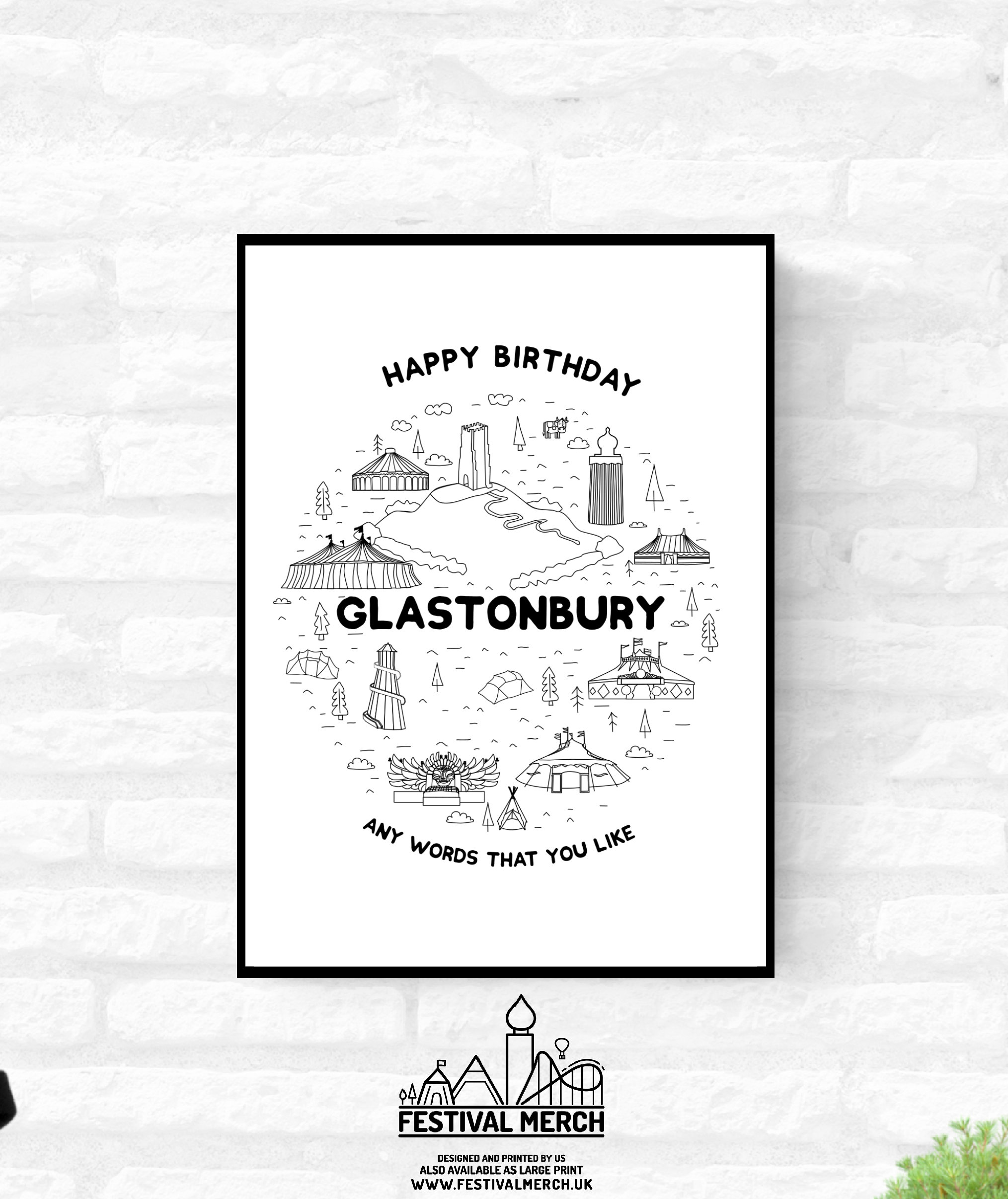 Personalised Art Print - Glastonbury Festival Inspired (Unofficial) - A4 A3 A2 - Print Cushion Bag Cup Metal Sign - Festival Merch