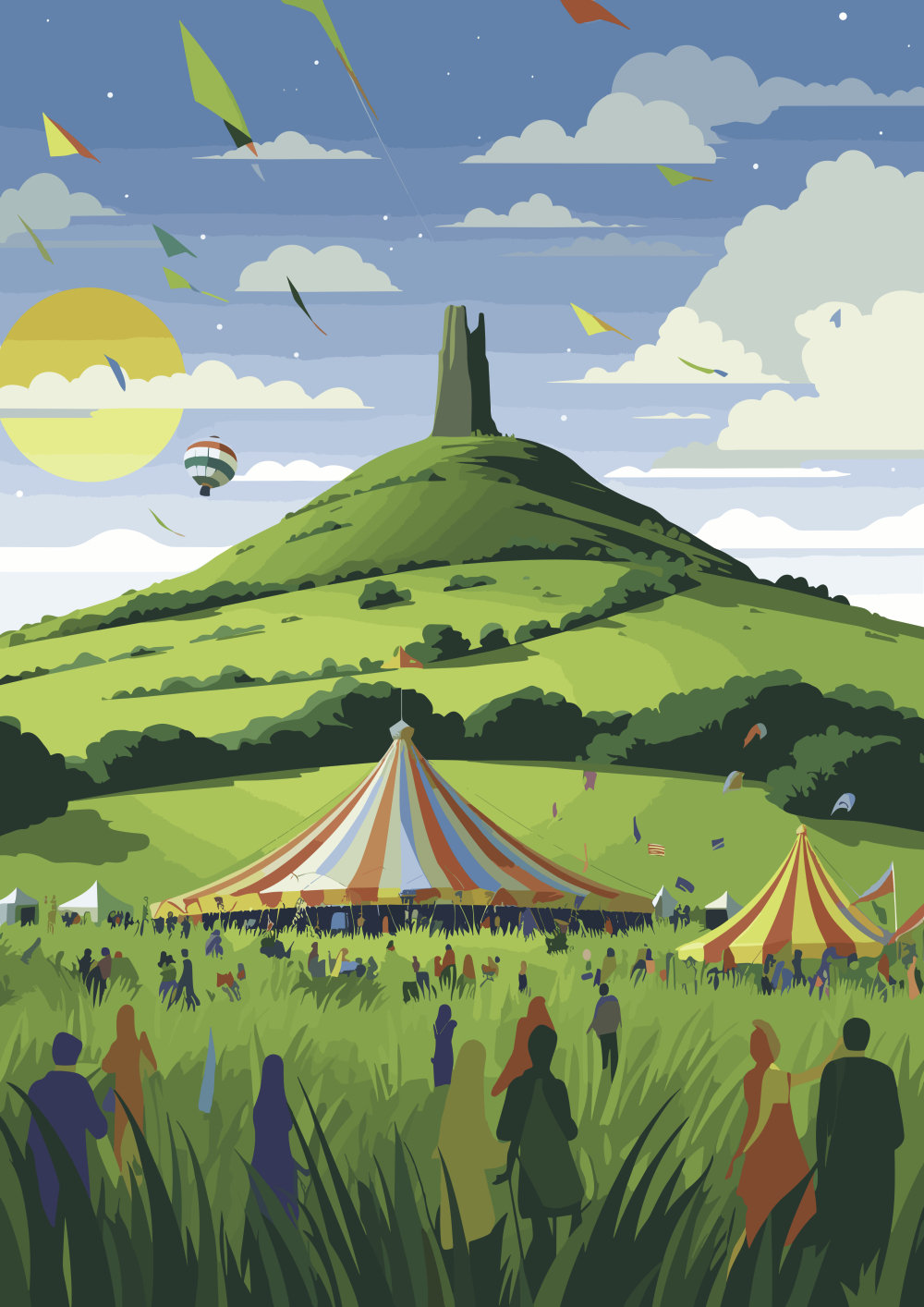 Personalisable Glastonbury Tor Print - A4 A3 A2 - Inspired Glasto Festival Poster - Festival Merch