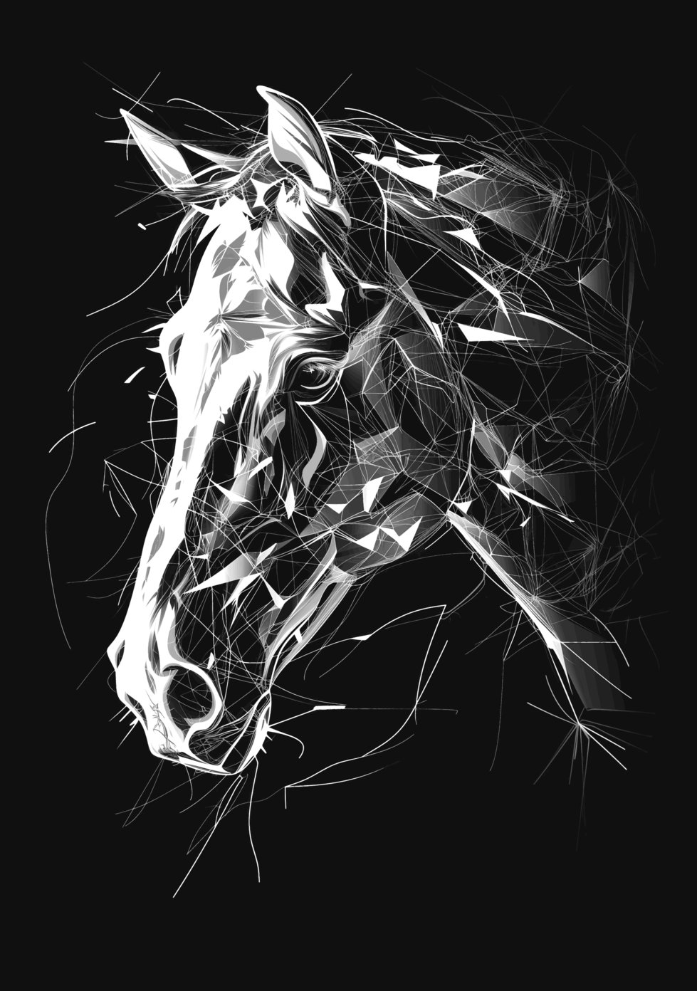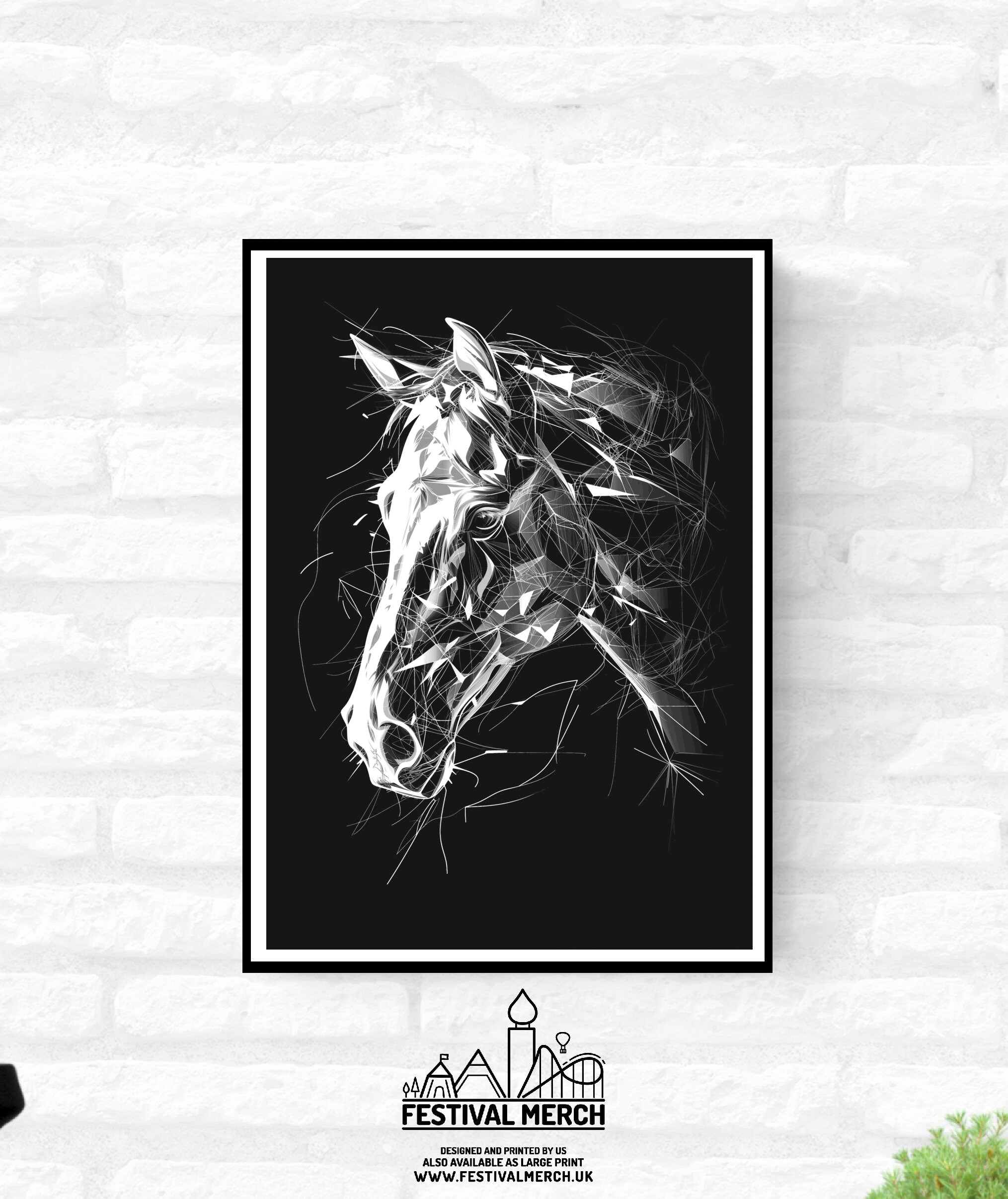 Horse Print Abstract - Black and White Art - office home decor - A4 A3 A2 - Festival Merch