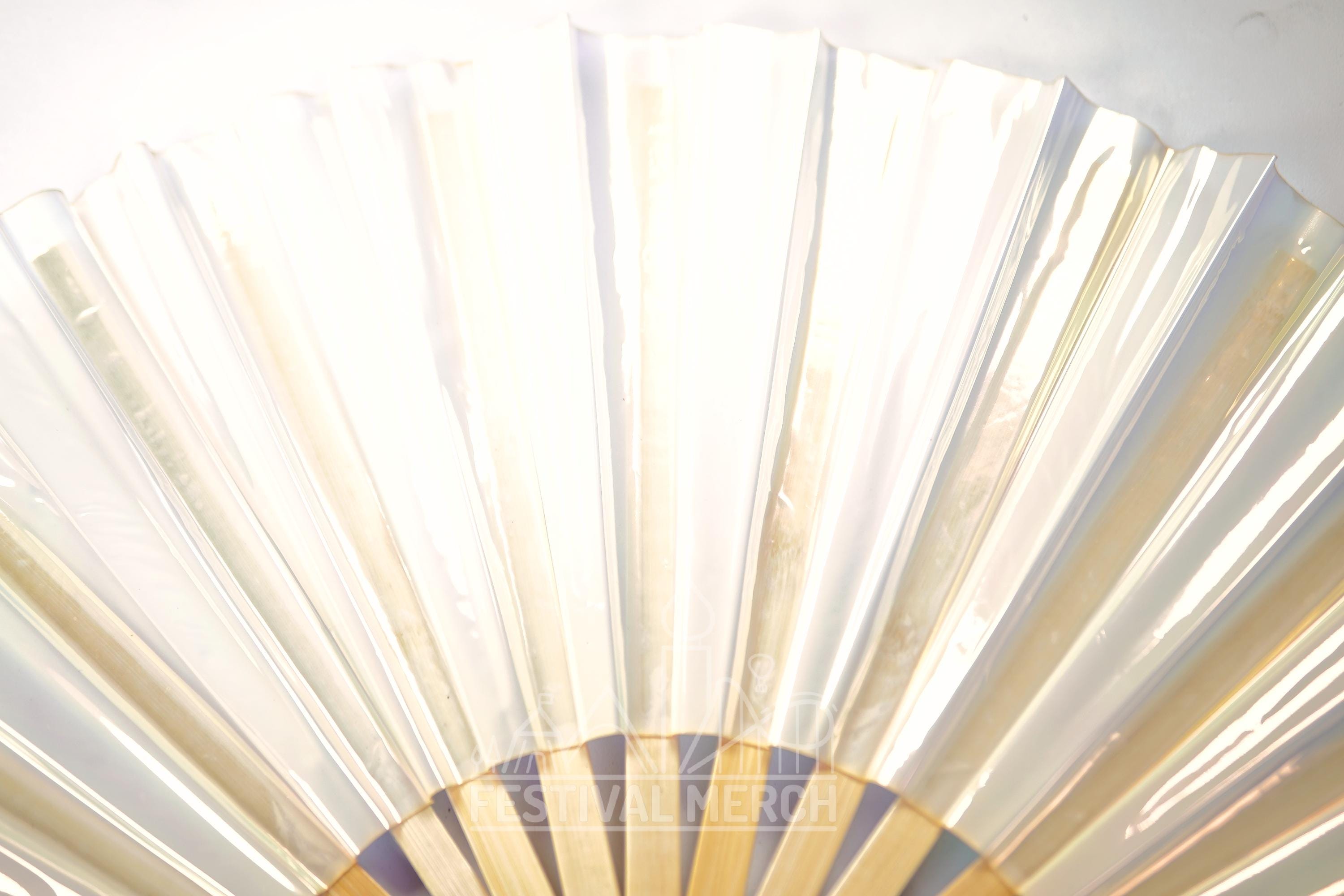 Iridescent Hand Fan XL Bamboo | Festival Merch | Vinyl Shimmer Clack Fan | EDM Rave accessories | Pride Festival | Holographic Ibiza Holiday