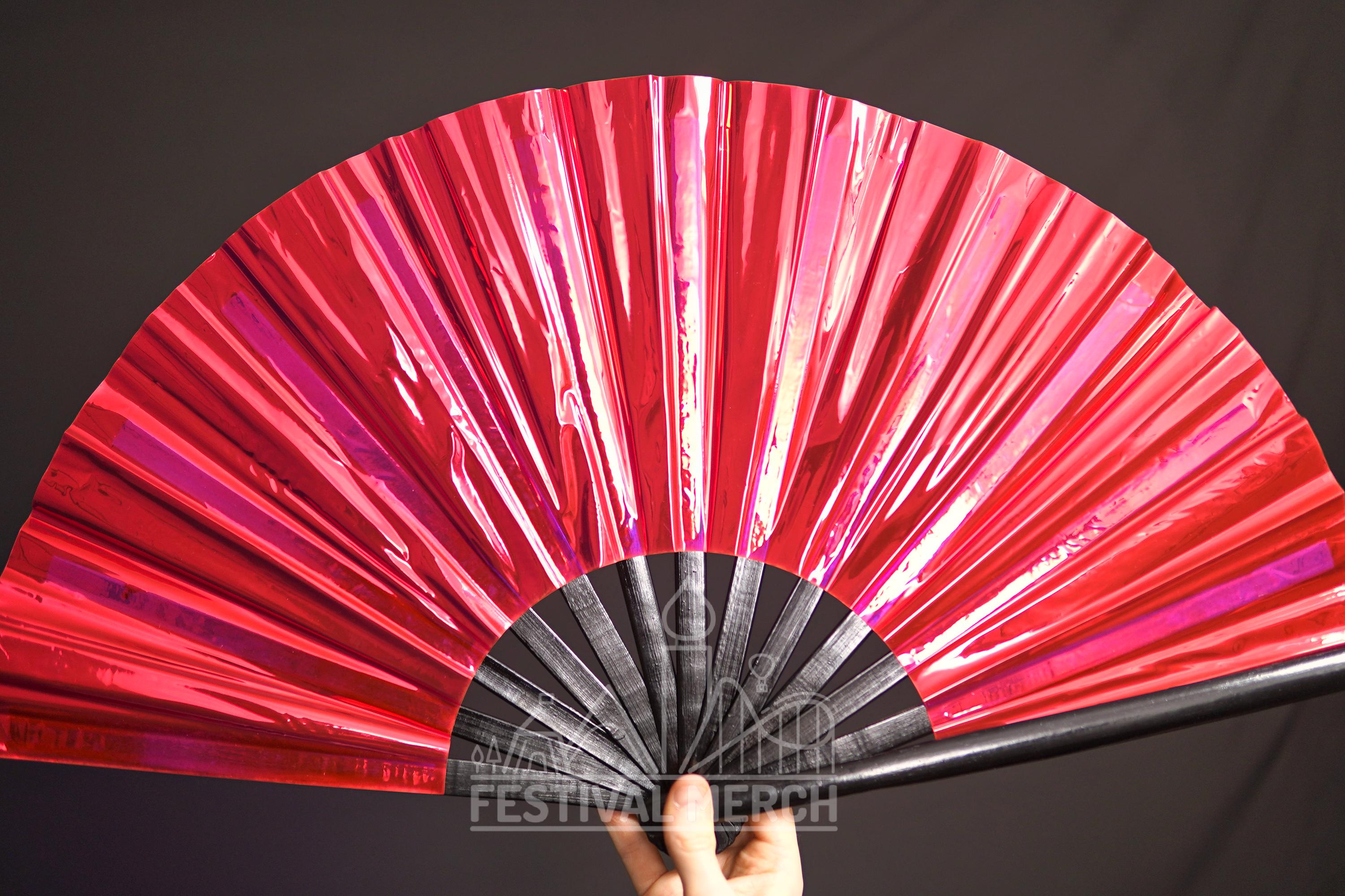 Iridescent Hand Fan XL Bamboo | Festival Merch | Vinyl Shimmer Clack Fan | EDM Rave accessories | Pride Festival | Holographic Ibiza Holiday