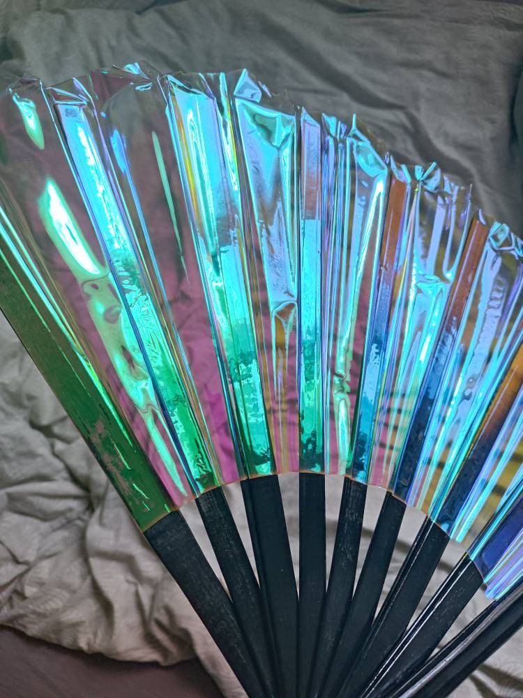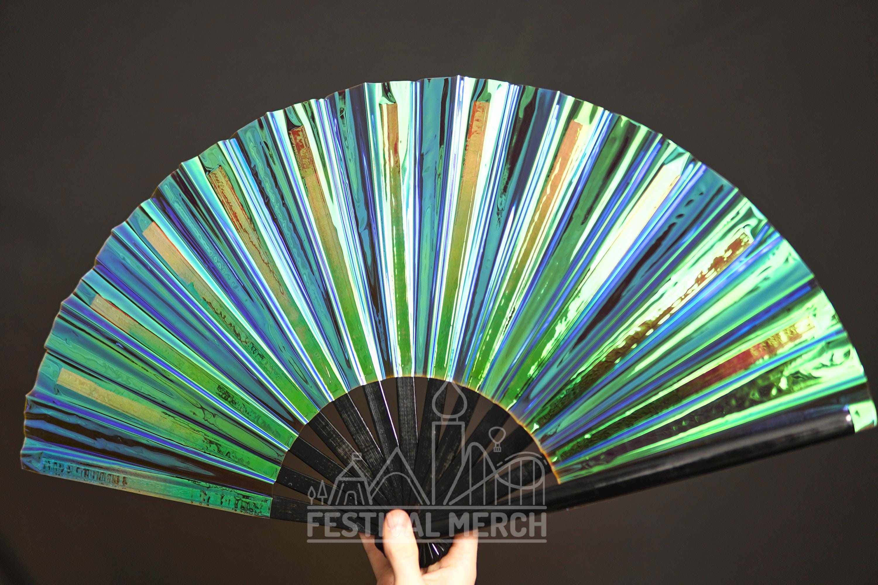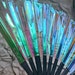 Iridescent Hand Fan XL Bamboo | Festival Merch | Vinyl Shimmer Clack Fan | EDM Rave accessories | Pride Festival | Holographic Ibiza Holiday
