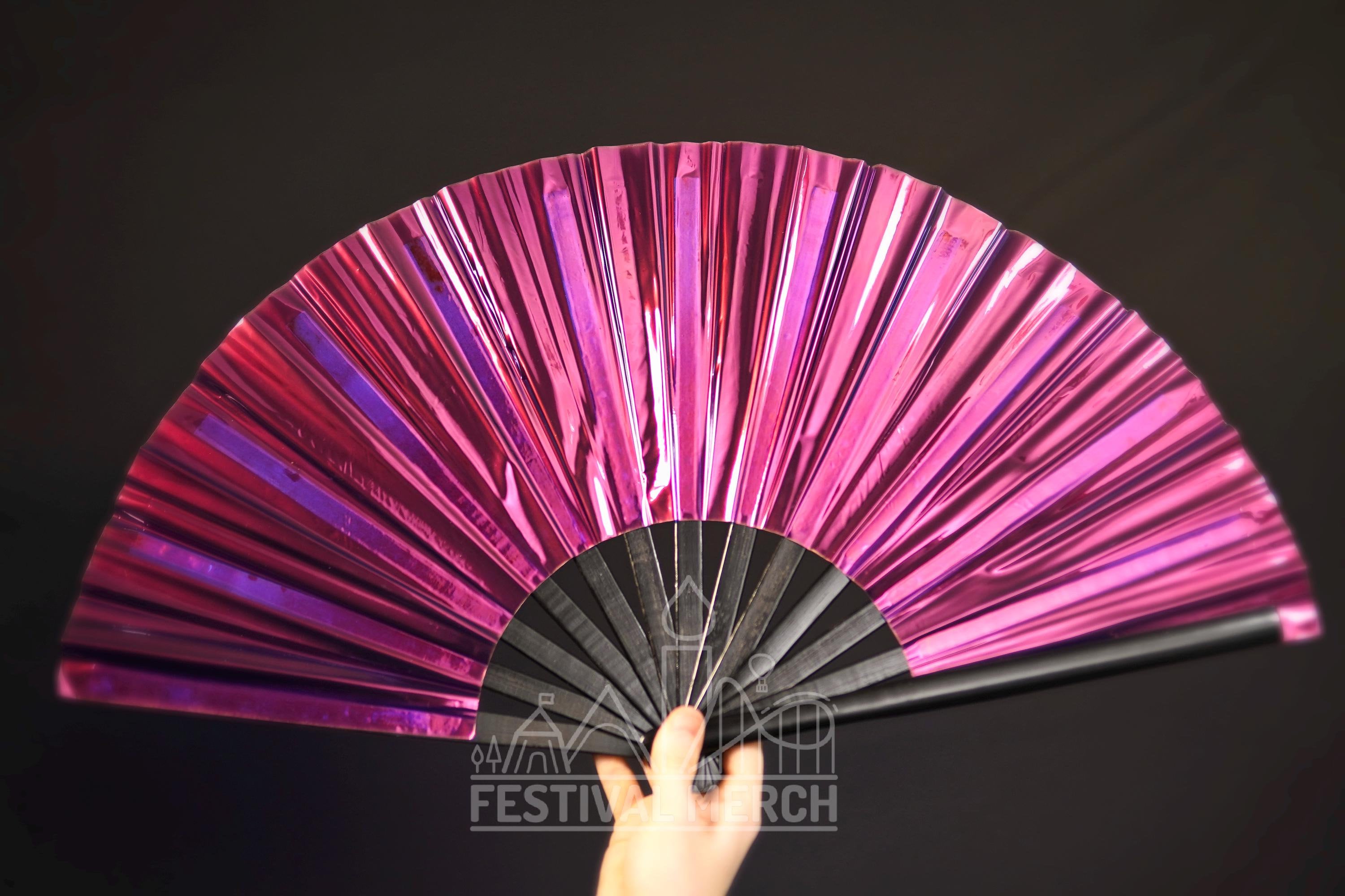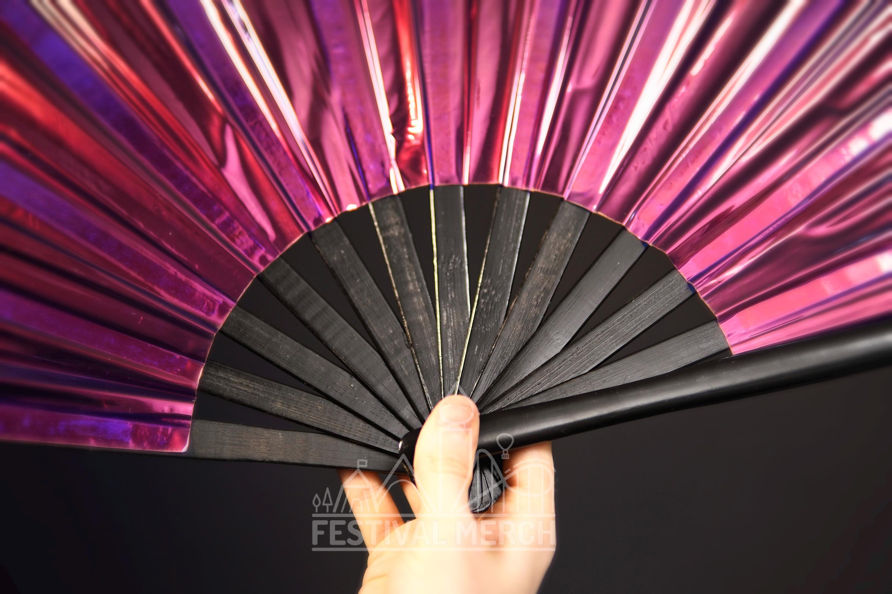 Iridescent Hand Fan XL Bamboo | Festival Merch | Vinyl Shimmer Clack Fan | EDM Rave accessories | Pride Festival | Holographic Ibiza Holiday