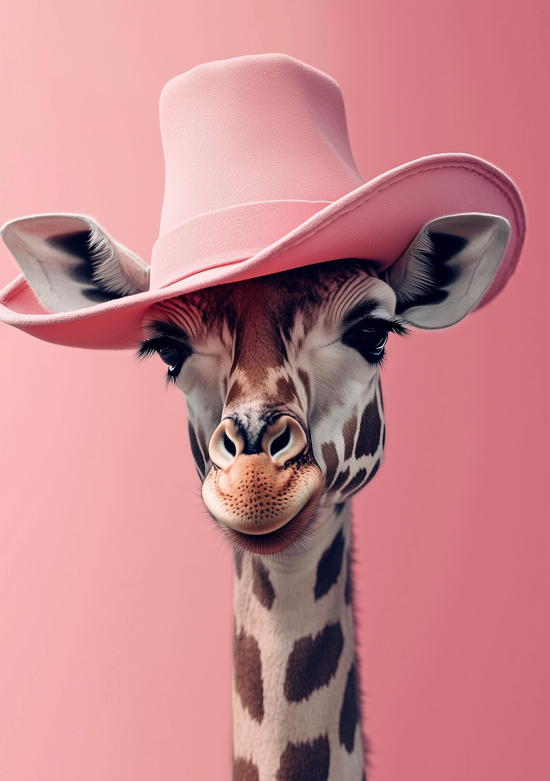 Funny Animal Wall Art Giraffe wearing cowboy hat cowgirl hat Tropical - A4 A3 A2 - Festival Merch