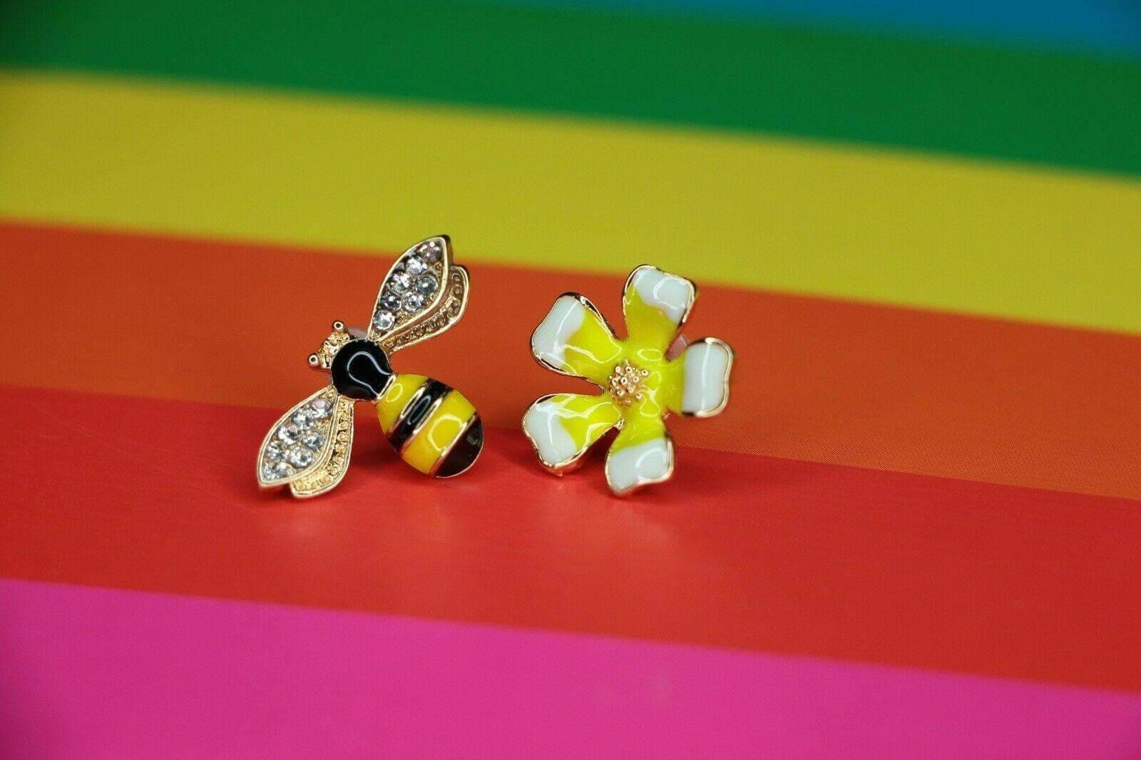BRAND NEW Bumble Bee earrings studs Sterling Silver - Bee and Spring Flower Perfect for a Gift for yourself or a loved one :)